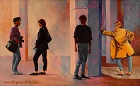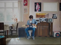 | | | | | | | | | | | | | | Champion bodybuilders always look a little bit absurd, but they also always look a little bit magnificent, and Arnold Schwarzenegger in his prime looked very magnificent indeed. For my money none have come close to equalling him. I thought I'd like to paint him and looked around for pictures but was surprised how hard it was to find anything that really does him justice. So I stopped looking at stills and watched my DVD of Pumping Iron for the umpteenth time, and photographed this, my favourite excercise scene in the movie, where Arnie is doing standing cable crossovers while filmed from underneath. The movie was shot in 1975 and records Arnold's inexorable march toward his 6th Mr Olympia title. | | | | | | | |
